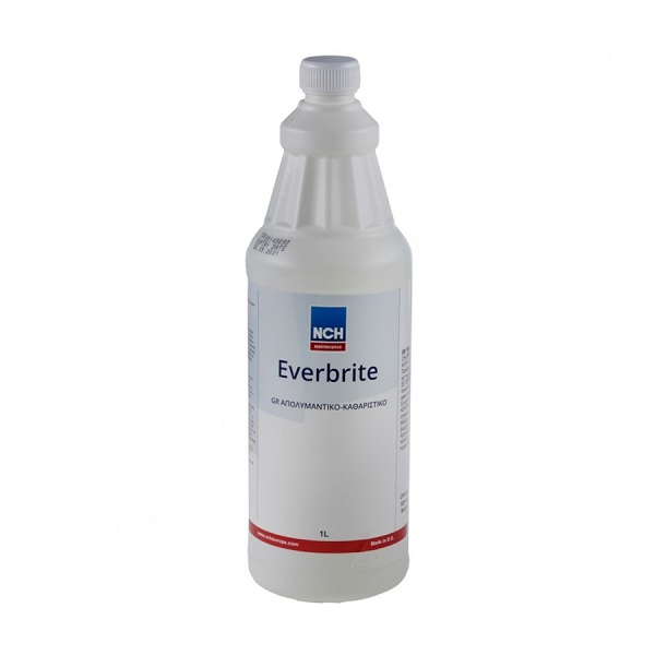 Λοιπά χαρακτηριστικά: Το απολυμαντικό καθαριστικό EVERBRITE ενδείκνυται για καθαρισμό και απολύμανση κλιματιστικών. Είναι ασφαλές για χρήση πάνω σε σκληρές πλάκες ασφάλτου, σε καλύμματα δαπέδου που είναι από λινέλαιο, σε λάστιχο, μάρμαρο, πλαστικό. Είναι αποτελεσματικό για το σταμάτημα της αναπτύξεως της μούχλας και περιορίζει τους κινδύνους μυκητιάσεως και ευρωτιάσεως. Έτσι προλαμβάνει την εμφάνιση διαφόρων οσμών που προκαλούνται από τη διάσπαση των οργανικών ουσιών.
